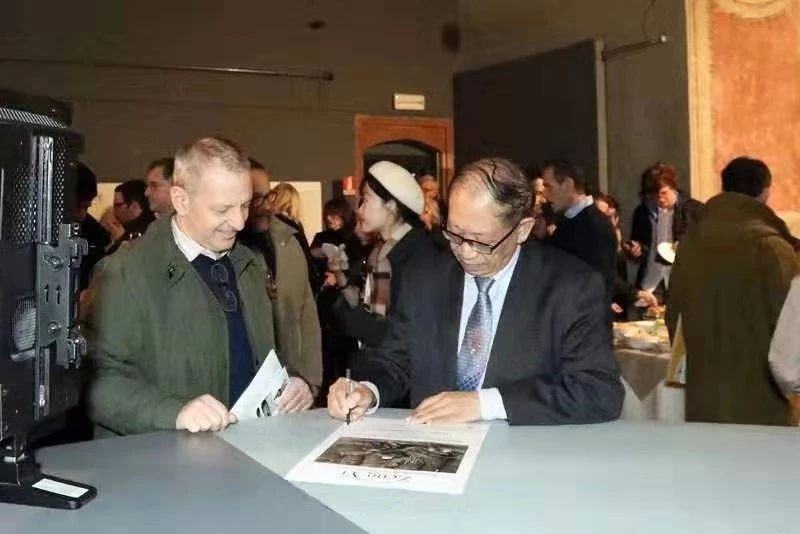 开幕式结束后,大家在展厅观看展览,由帕维亚市政府资助、博物馆编辑出版的意大利文《曾毅摄影艺术作品选》在现场出售,许多观众拿着买的画册、明信片和海报请曾毅签字收藏。