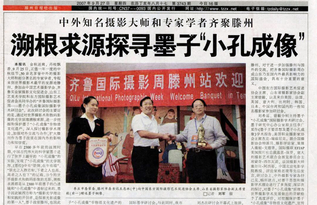会谈中,曾毅教授还回顾了与滕州深度合作的历史渊源,他在主持2007年齐鲁国际摄影周和2008年济南国际摄影双年展时,专门负责组织策划的两届“墨子小孔成像国际学术研讨会”以及组织三十多个国家的摄影师走进滕州、走进“小孔成像”的发祥地和墨子故里进行朝拜和交流时的情景。